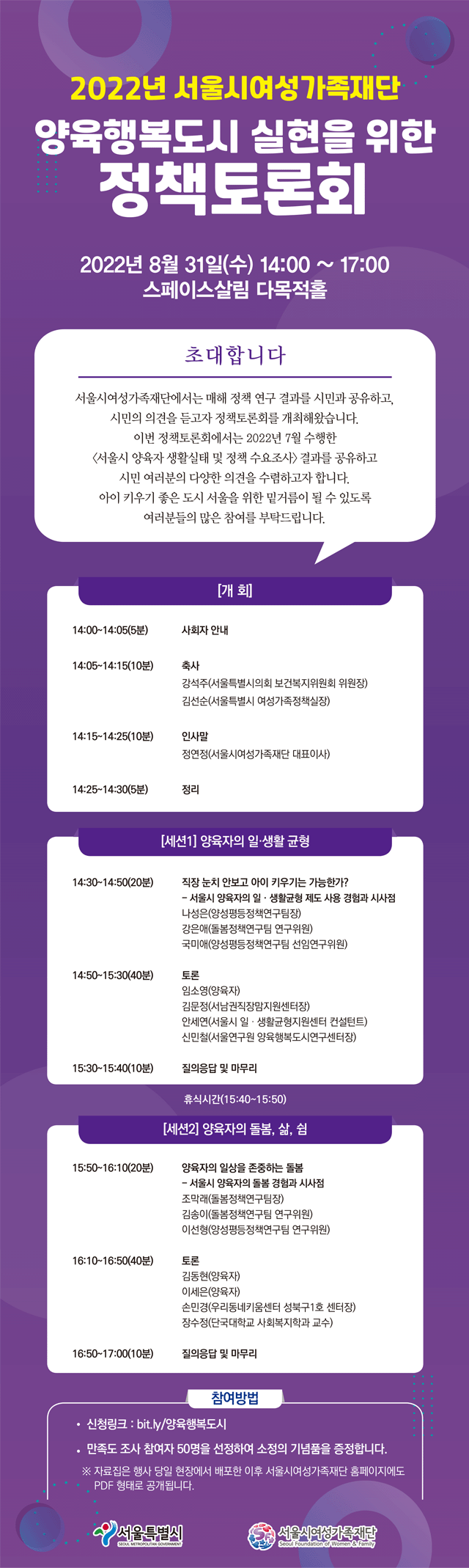 [서울시여성가족재단]양육행복도시 실현을 위한 정책토론회(8/31)
