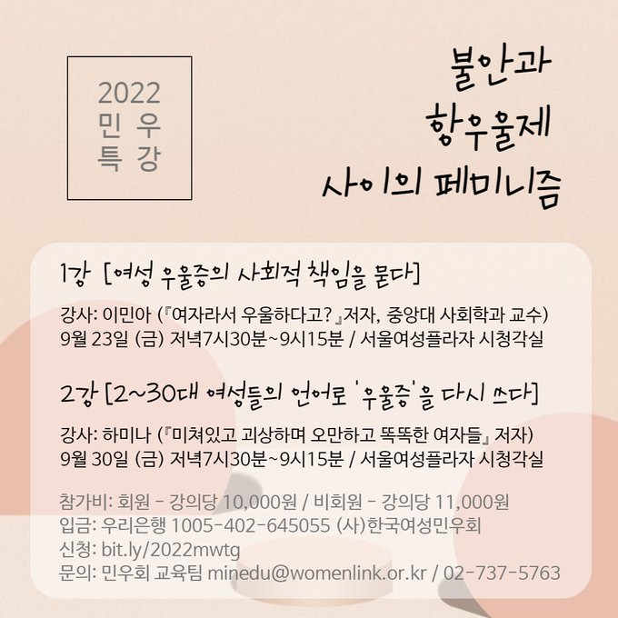 2022 민우특강 [불안과 항우울제 사이의 페미니즘]