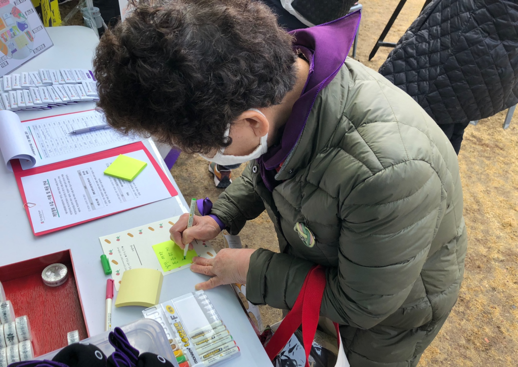 성평등터 부스에 참여해 주신 213명 중 93명의 시민들이 응원캠페인에 참여해 주셨어요.