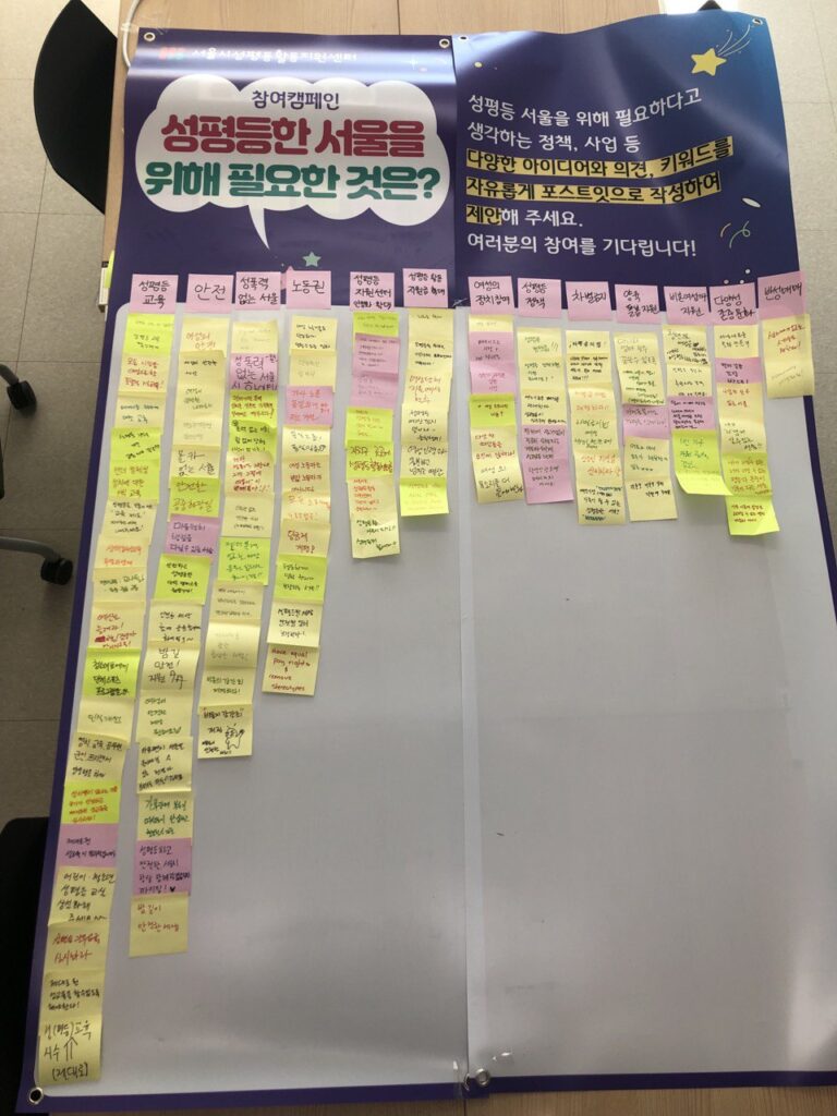남녀노소할 것 없이 문전성시를 이루었던 참여캠페인 <성평등한 서울을 위해 필요한 것은?>도 잘 마쳤는데요.