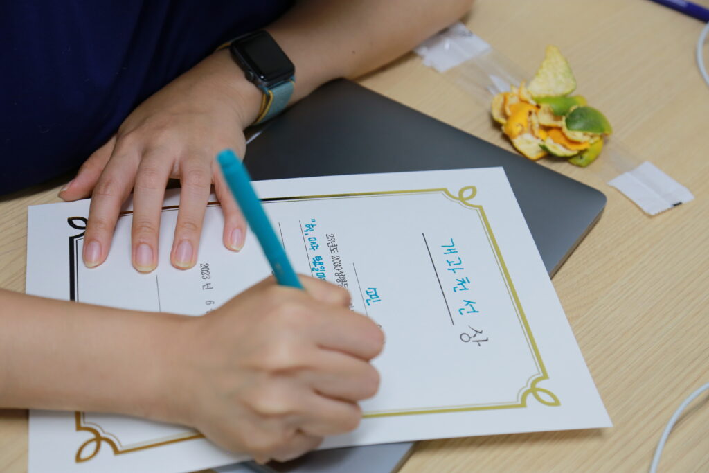 3개월동안 교육활동가양성과정을 수료하며 애쓴 나에게 주고 싶은 상을 직접 써서 수여할 수 있는 흔치 않은 기회!