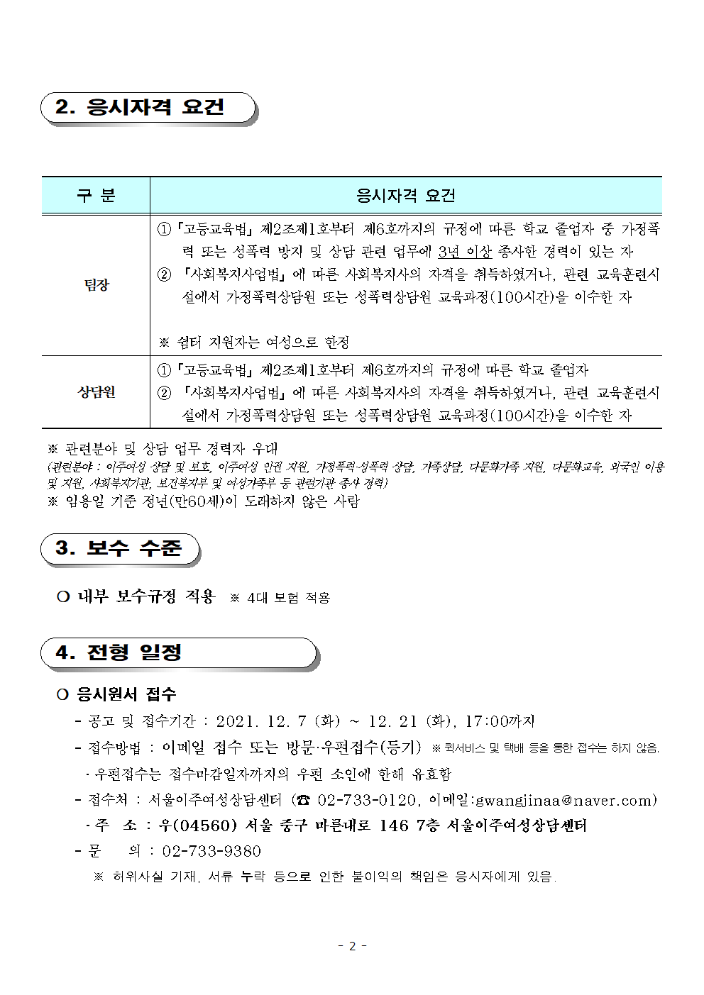 – 최종 합격자 발표는 홈페이지(www.seoulgenderequity.kr) 공지사항 게시, 개별 통보