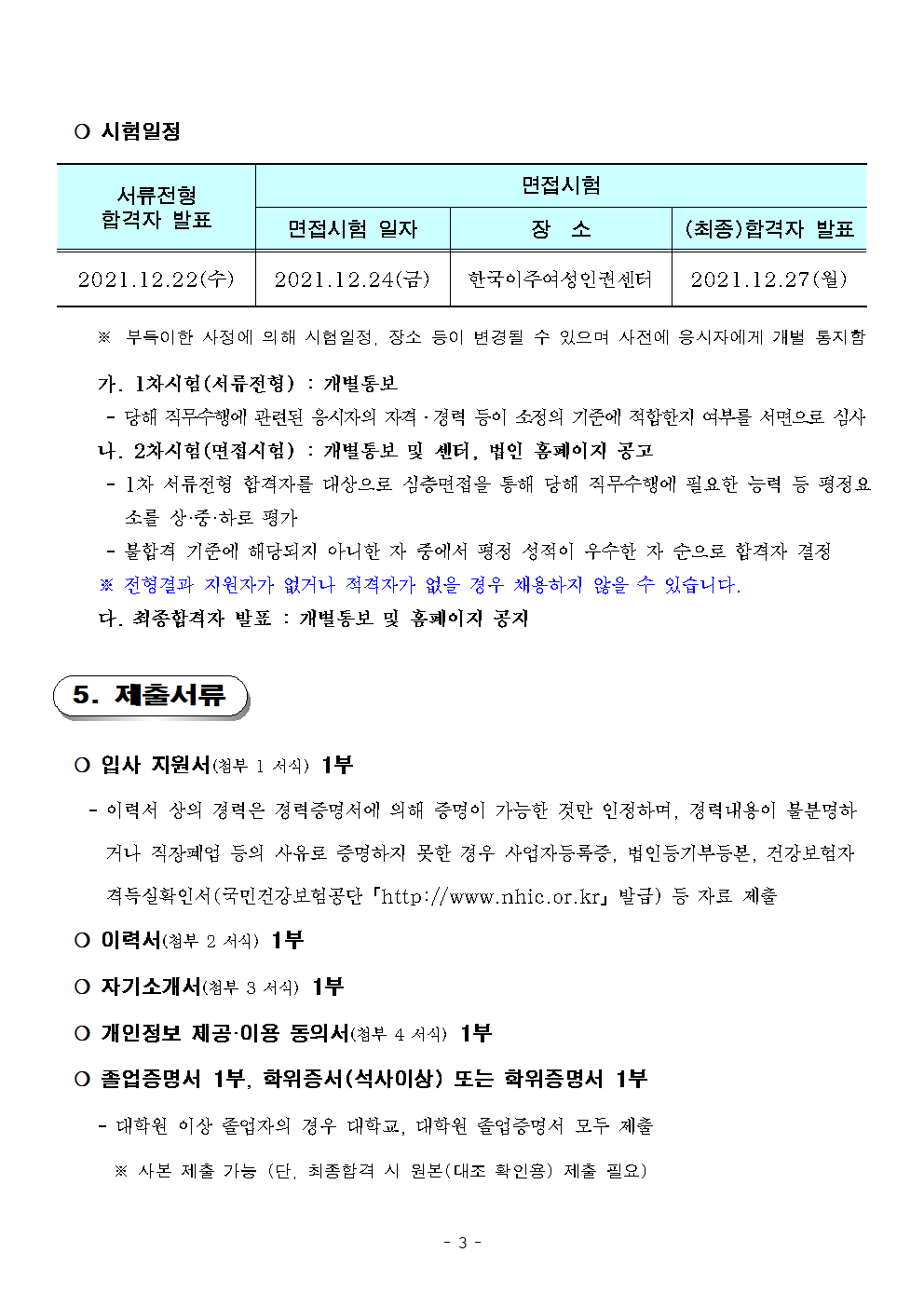 ❍ 서류합격자 발표 2022년 1월 12일(수) 오후 5시