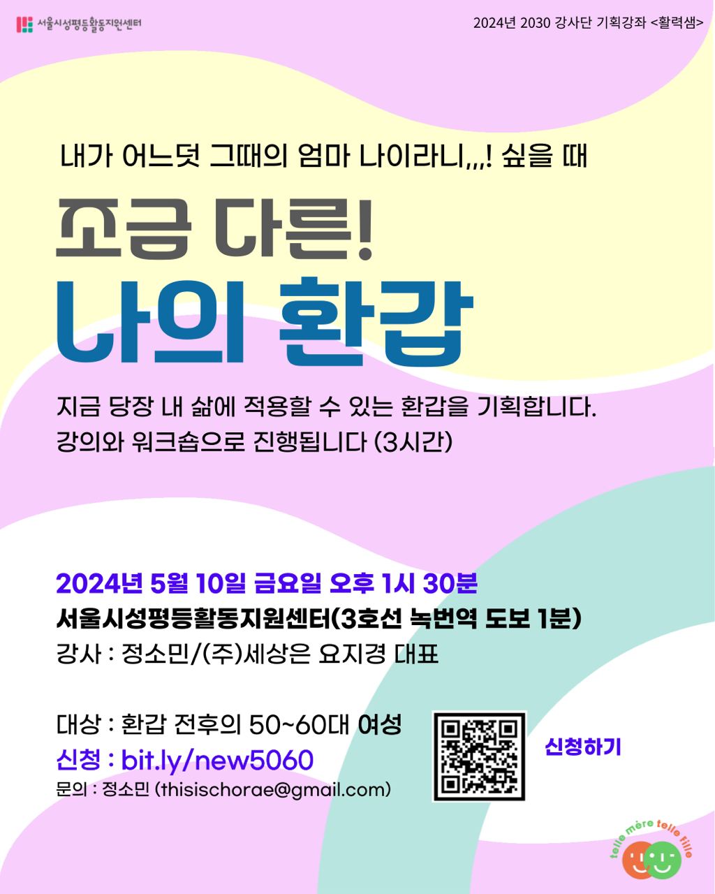 강의장소: 서울시성평등활동지원센터 강의실 (은평로245, 2층)