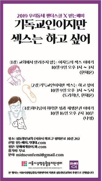 – 새말 : 기억을 더듬어보면 그때 저희 프로그램 제목이 ‘기독교인이지만 섹스는 하고 싶어’였는데요. 많이 부담을 느끼지 않으면서도 프로그램을 해보고 싶었고 여러 가지 이야기를 나눌 수 있는 장을 만들고 싶다는 마음에 공모 사업을 신청을 하게 됐습니다. 저희끼리 준비해서 하는 여러 회기의 강의 사업은 처음이었고요. <우리동네 젠더스쿨>처럼 3회기 프로그램은 처음이었기에 더 의미가 있었습니다.