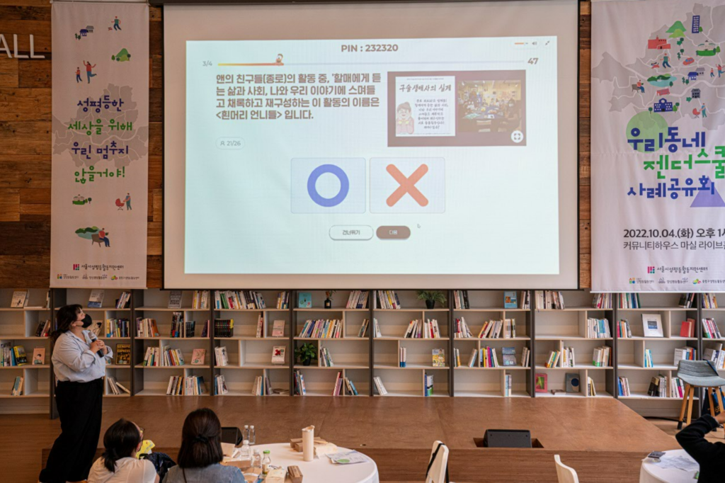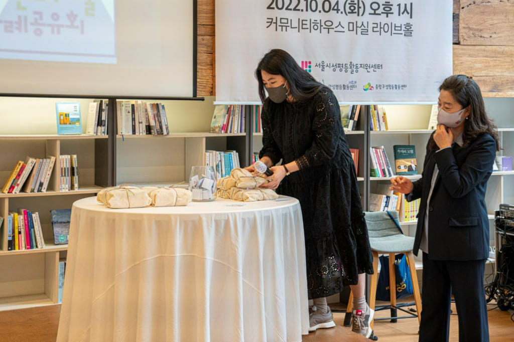 – 몇 년 전까지만 해도 저희는 작은 단체였는데요, 서울시 동북 5구의 젠더 워킹그룹의 선배 활동가와 같이 활동하며 많이 배웠거든요. 다른 단체 활동 얘기만 들어도 공부가 되더라고요. 그래서 우리 지역에서도 이렇게 해보면 좋겠다는 영감도 많이 받았어요.
