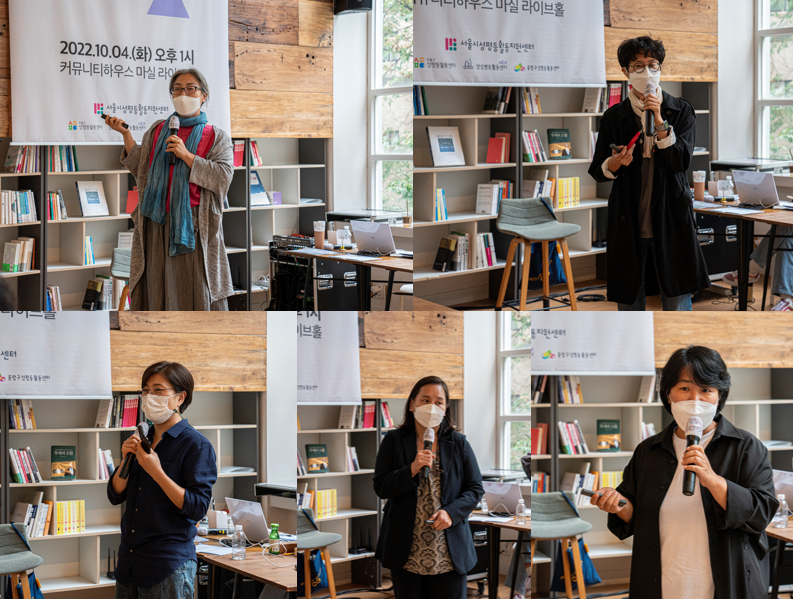 – 새말 : 연대와 네트워크가 힘든 순간을 이기기 위한 좋은 동력이 되는 것 같습니다. 이렇게 서울시성평등활동지원센터가 네트워킹의 역할을 하는 것이 정말 중요하다는 생각이 들고요. 저희 또 함께 만나고 함께 싸워서 꼭 승리합시다.